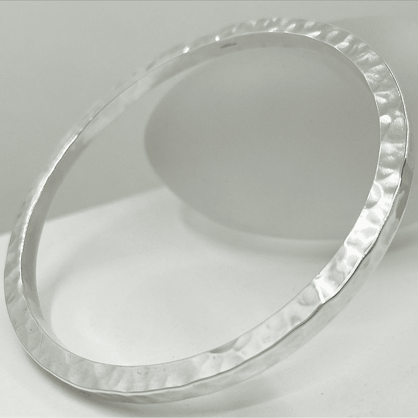 This large hammered bangle will come boxed with silver care information.